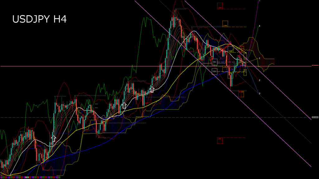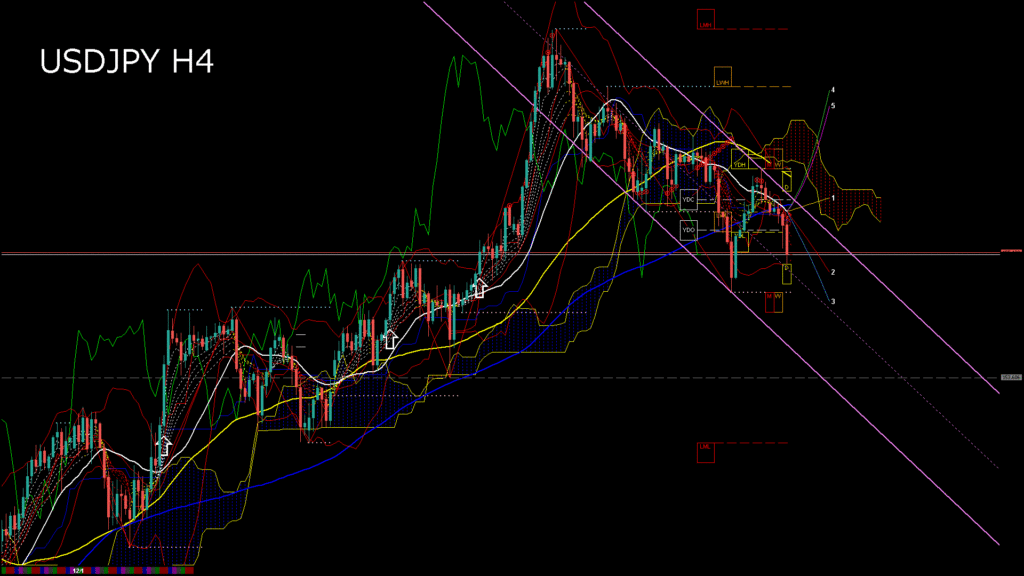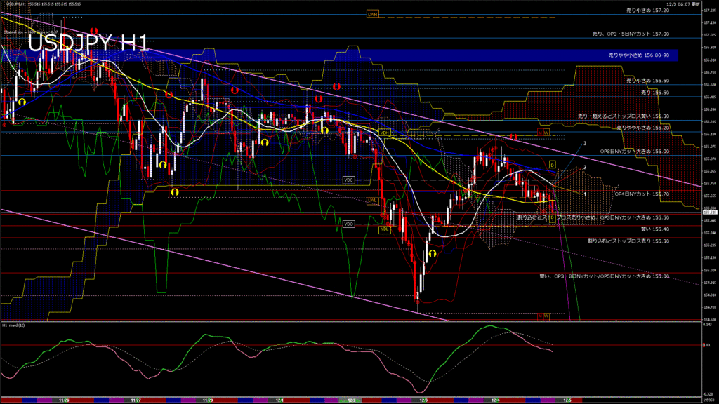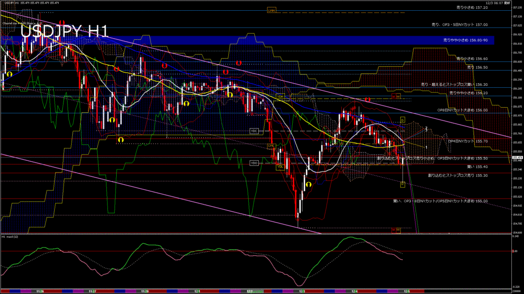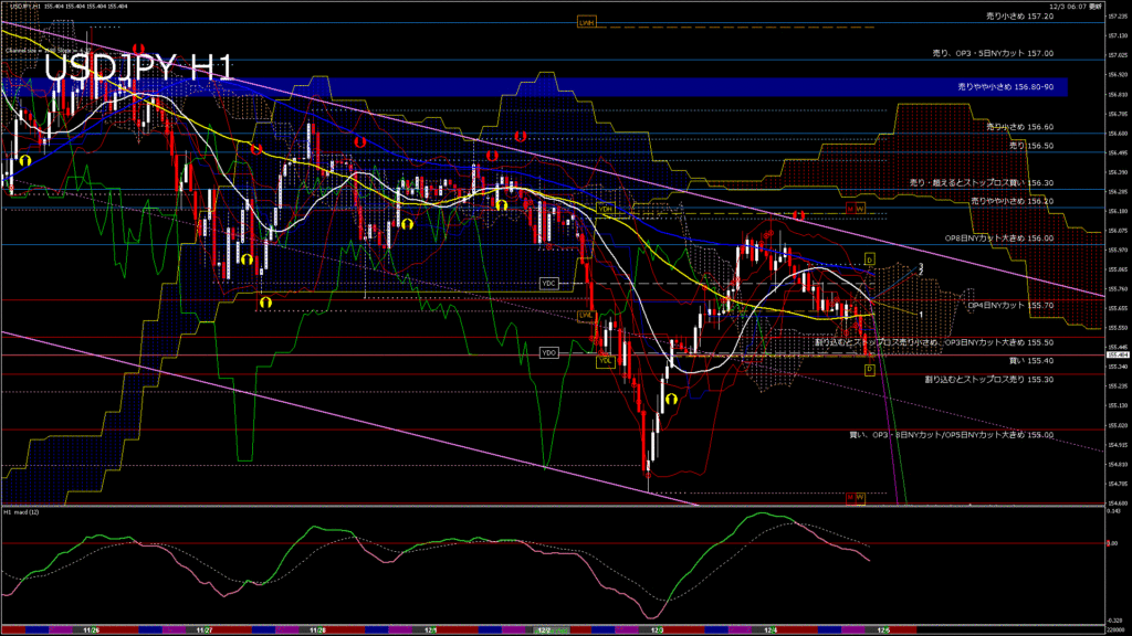 情報 USDJPY-H4移動平均線と現在値(RSI)-2025.12.4 3:00:00