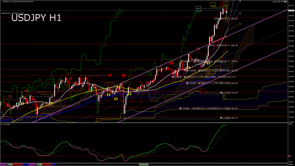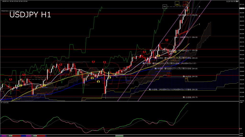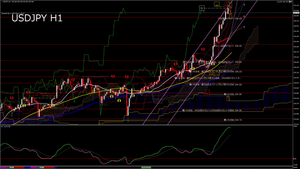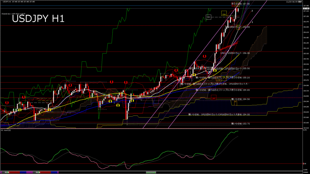 情報 USDJPY-H1移動平均線と現在値(RSI)-2025.11.20 14:00:00