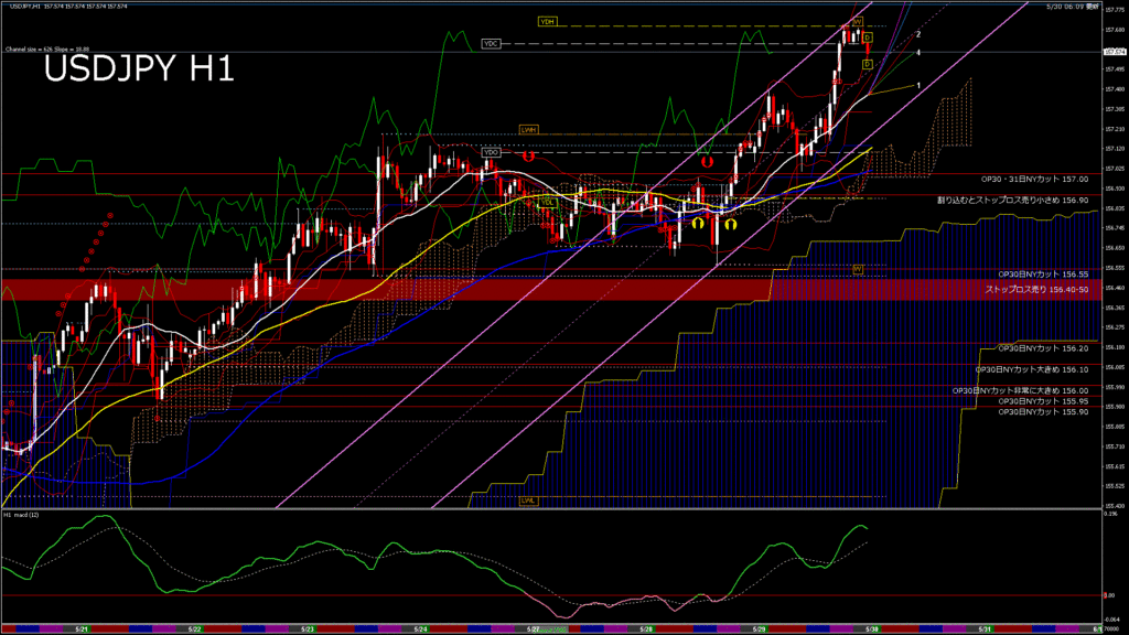 USDJPY-H1移動平均線と現在値(RSI)-2024.12.13 12:00:00
