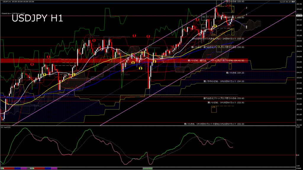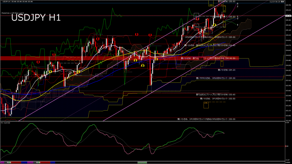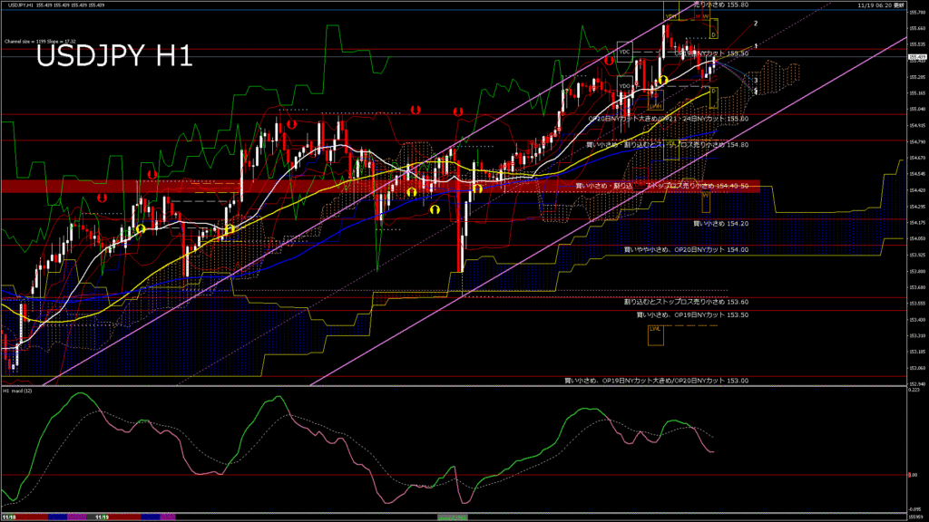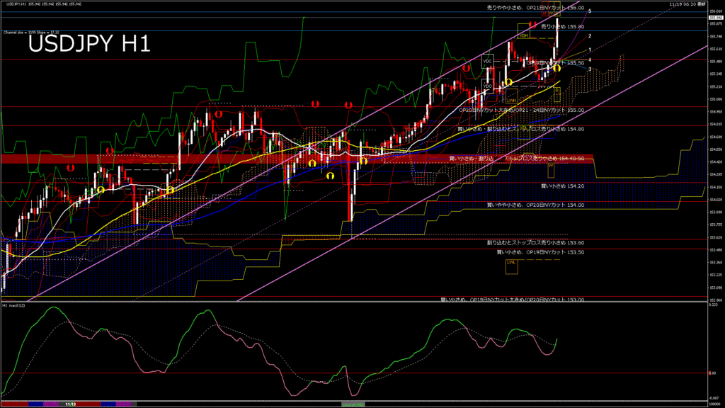 情報 USDJPY-H1移動平均線と現在値(RSI)-2025.11.19 18:00:00