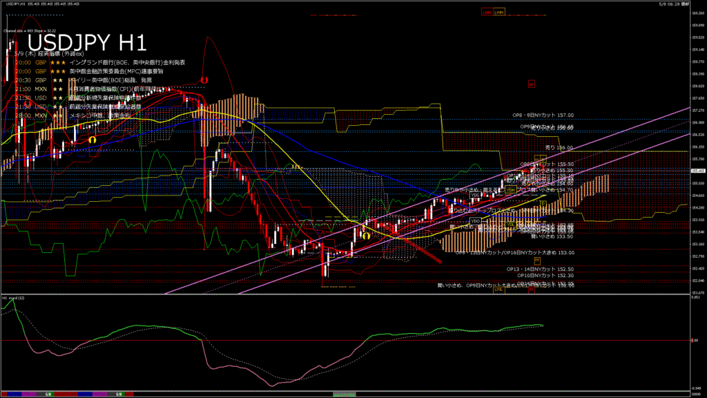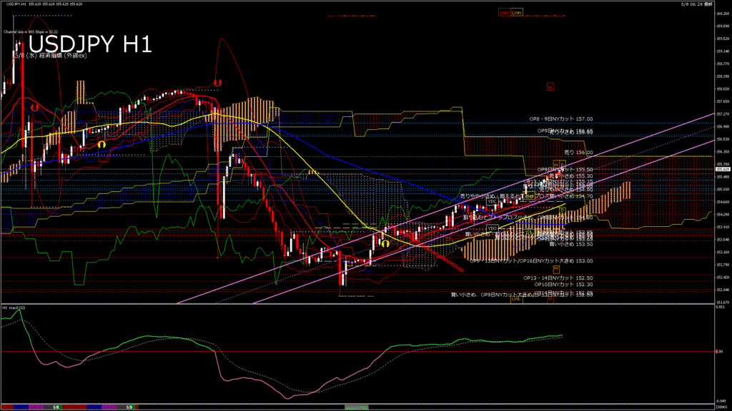 USDJPY-H1移動平均線と現在値(RSI)-2024.11.28 9:00:00
