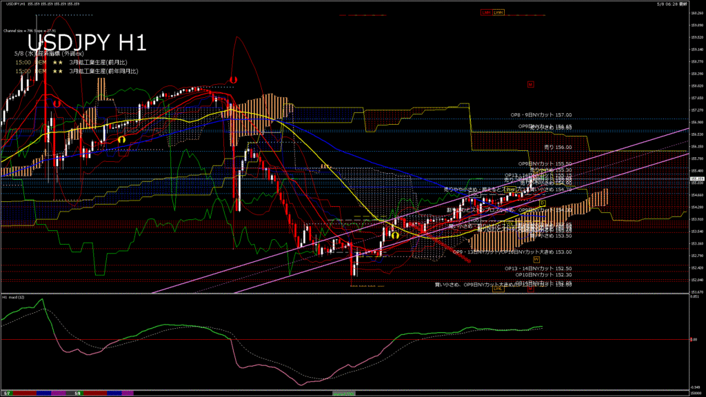 情報 USDJPY-H4移動平均線と現在値(RSI)-2024.11.28 7:00:05