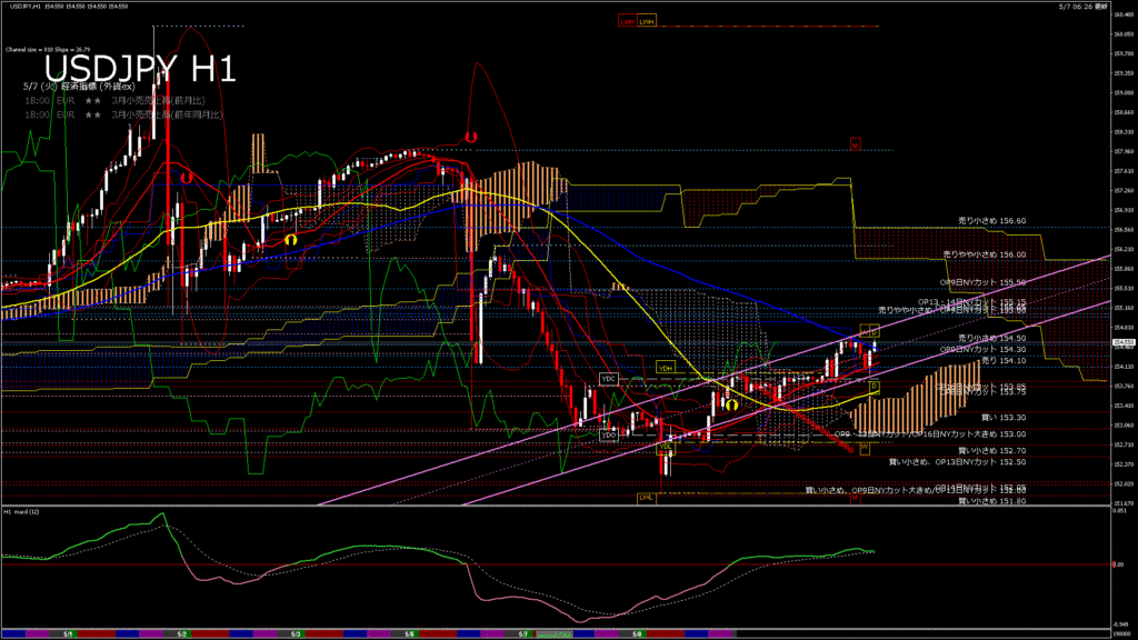 情報 USDJPY-H1移動平均線と現在値(RSI)-2024.11.28 10:00:00