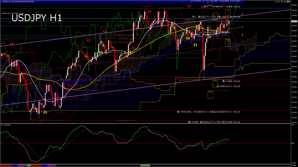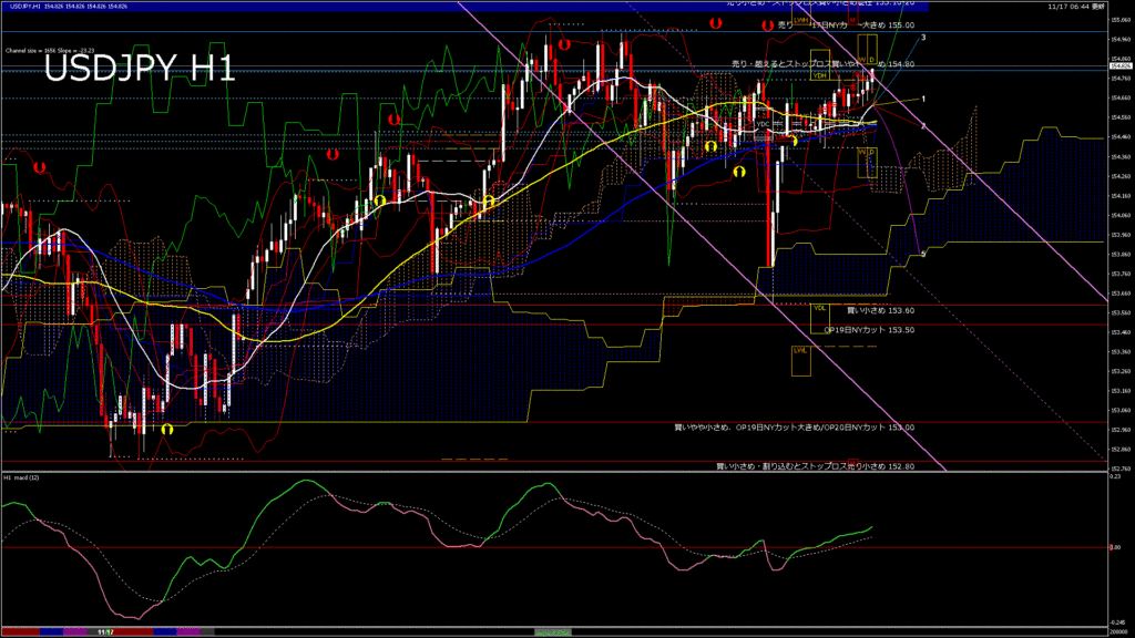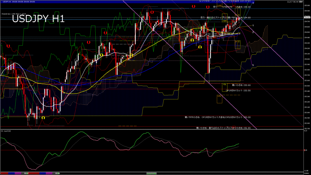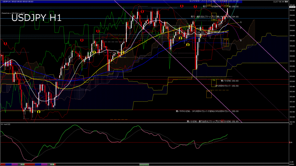 情報 USDJPY-H1移動平均線と現在値(RSI)-2025.11.18 3:00:00