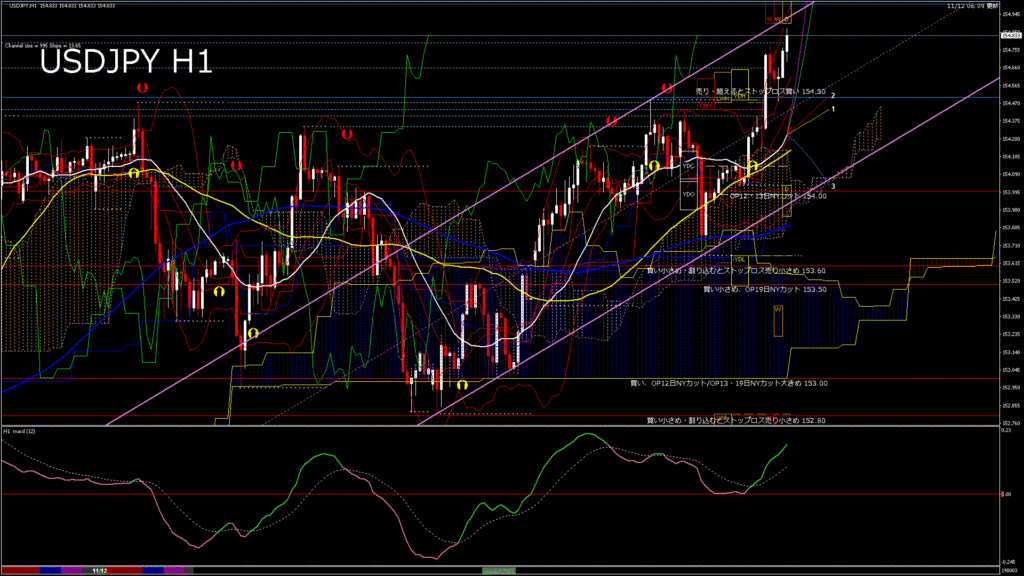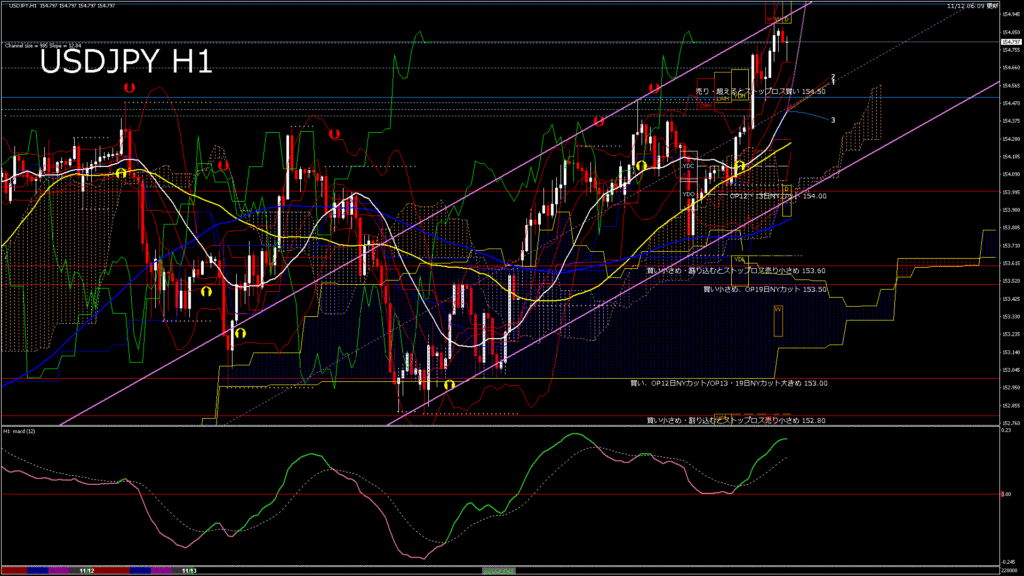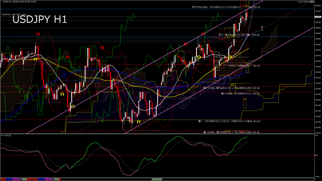 情報 USDJPY-H1移動平均線と現在値(RSI)-2025.11.13 2:00:00