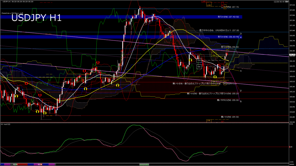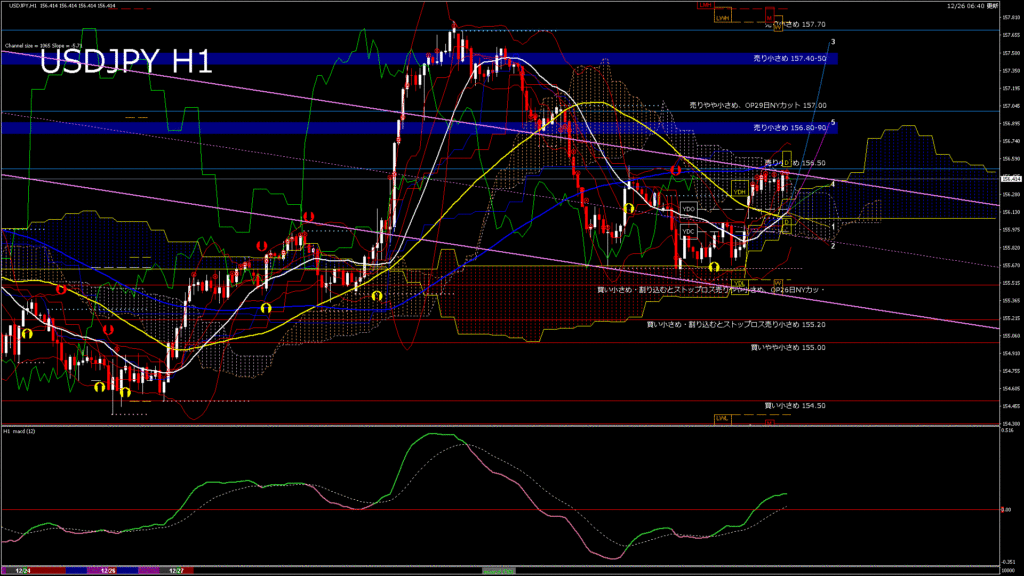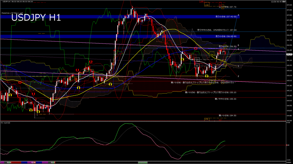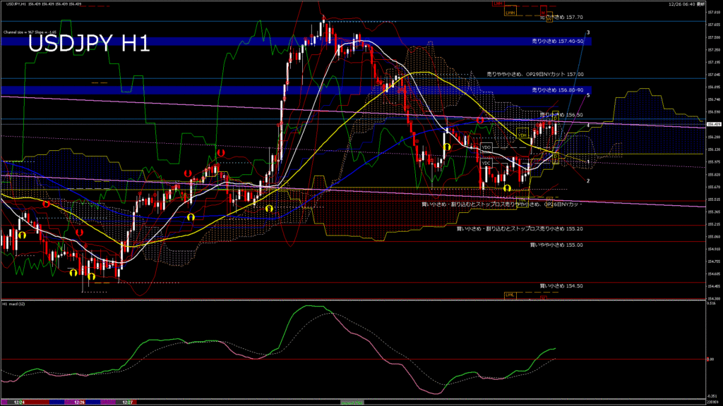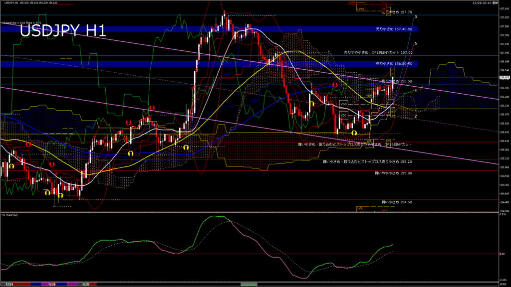 情報 USDJPY-H1移動平均線と現在値(RSI)-2025.12.27 2:00:00